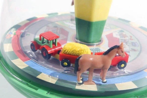 Dieser Brummkreisel Bauernhof brummt nicht nur, er hat einen anderen tollen Effekt! Auf der Kreiseloberfläche fährt der Traktor im Kreis an Tieren vorbei und Bauernhofgeräusche ertönen – supercool für kleine Bauernhoffans.
