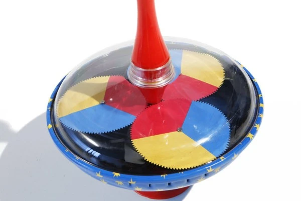 Dieser Brummkreisel brummt gar nicht, er hat einen anderen tollen Effekt! Auf der Kreiseloberfläche sind grafische Formen in rot-gelb-blau aufgedruckt. Wenn der Kreisel nun Fahrt aufnimmt, verschwimmen die Farben und bilden neue Muster in den Mischfarben – spannend zu beobachten!