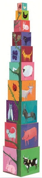 Das farbenfrohe Stapelspiel „Tiere & Natur“ von der Marke Djeco ist ein lohnender Zeitvertreib für die Kleinsten, die so ihre Welt spielerisch erforschen und begreifen. Es besteht aus 10 Würfeln, die mit wunderschönen, bunten Motiven bedruckt sind und stapelbar sind. Die Würfel können ebenso ineinander gesteckt werden, da sie sich bezüglich ihrer Größe nach oben hin verjüngen. Künstler aus Frankreich haben ihrer Kreativität freien Lauf gelassen und ihr ganzes Herzblut in das Design der einzelnen Würfel fließen lassen. Jede Seite der Würfel präsentiert sich in einem anderen Design: mal Tiere, Pflanzen oder Zahlenreihen. Ein wahrlich hübsch gestaltetes Stapelspiel für Kinderhände aus Künstlerhand!