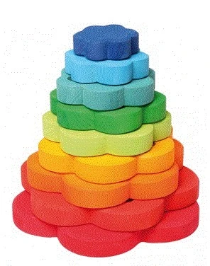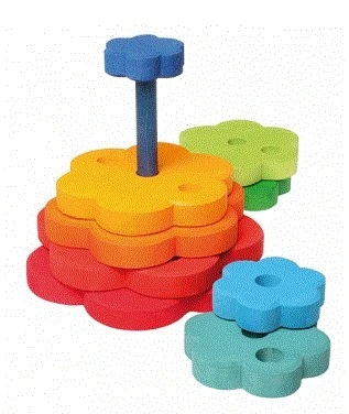 Steckspiele wie dieser Scheibenturm in Blumenform bereiten die gesamte Kindheit über Freude. Die ganz Kleinen bauen den Turm auseinander und wieder zusammen, dabei wird die Auge-Hand-Koordination, die Feinmotorik sowie die Farb- und Größenwahrnehmung geschult. Später werden aus den Einzelteilen dann neue Bauwerke und Spielwelten errichtet. Und für die Eltern ist auch noch ein Nutzen dabei: Die Löcher in den einzelnen Blumenscheiben passen perfekt für Geburtstagsstecker und –kerzen und der Tisch kann festlich bunt dekoriert werden. Es wäre ja auch zu schade, wenn die wunderschönen Farben nur im Kinderzimmer zur Geltung kommen würden.