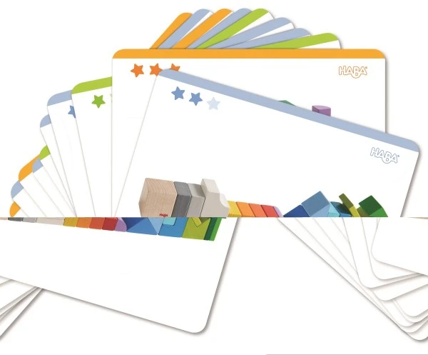 Das Haba 3D-Legespiel Würfelmix verbindet Spiel, Kreativität und die Verbesserung motorischer Fähigkeiten. Wie bei allen Bausteinen und Bauklötzen geht es bei diesem Spiel um die Konstruktion von Türmen, Blöcken und Flächen. Durch die speziellen Formen der Steine werden jedoch mit diesem Set die Möglichkeiten toll erweitert. 10 Vorlagekarten geben Vorschläge und Anleitungen für verschiedene Figuren – natürlich anschaulich und verständlich präsentiert, sodass auch die Kleinsten ab 3 Jahren sofort Erfolge feiern und die Lust am Gestalten entdecken können.