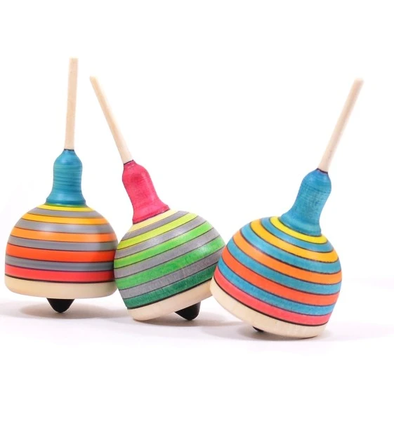 Der Fridolin aus der Mader-Kreiselmanufaktur ist ein kuppelförmiger Fingerkreisel mit einer Metallspitze.