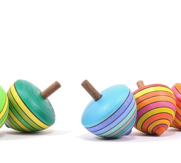 Das Mader Kreisel-Ei Feuer, Eis, Gras, Flieder, Grafit zeigt, dass auch beim Kreiseldesign wunderbare Innovationen möglich sind. Die Kinder werden staunen, wie toll sich dieses außergewöhnliche Kreiselexemplar mit seiner ungewöhnlichen Form dreht. Schöne, kunterbunte Farbvarianten und eine Metallspitze machen den Kreisel zu einem wunderschönen und hochwertigen Spielzeug. Die Mader Kreiselmanufaktur ist der Geheimtipp unter den Freundinnen und Freunden hochwertigen und vor allem handgedrechselten Holzspielzeugs. Viele Eltern schlagen in unserem Ladengeschäft immer wieder zu und freuen sich über die phantasievollen Ideen. Beste Naturmaterialien und individuelle Designs machen die Kreisel, Yoyos und viele weitere Artikel zu ganz besonderen Spielsachen, an denen Kinder langfristig viel Freude haben. • Mader Kreisel-Ei Feuer, Eis, Gras, Flieder, Grafit